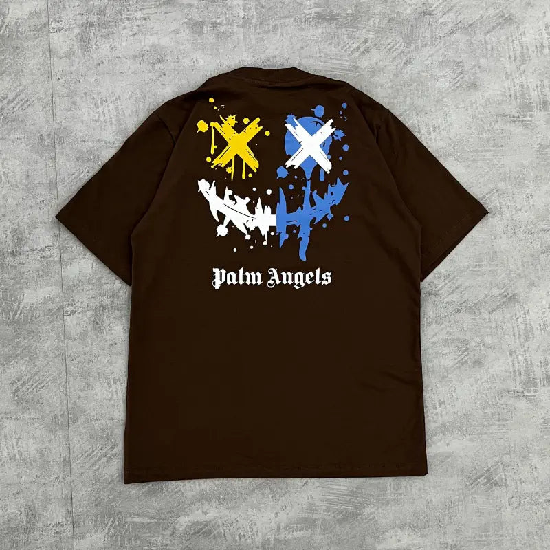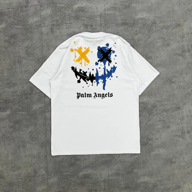 Camiseta Palm Angels com estampa de rosto sorridente, estilo street e autêntico.